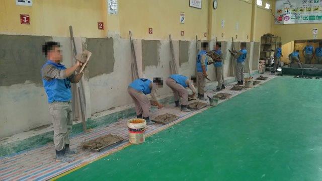 そして、A沼職業訓練指導員(左官・タイル科)の指導の下、受験対策訓練。